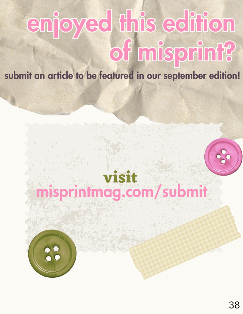 Misprint Magazine is a San Francisco-based fashion and lifestyle magazine which highlights current trends, small brands/artists, indie music, and emerging subculture – all through the eyes of the modern teenage girl. Catch us on the first of every month with a new volume of Misprint, and find us on Instagram (@misprint.magazine) and TikTok (@misprintmagazine) to keep up with our writers and editors.